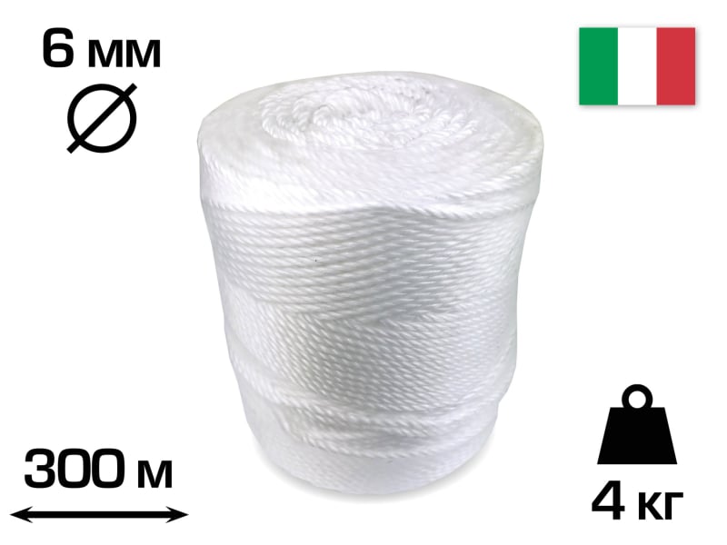 Канат шпагат 6 мм синтетичний (поліпропілен) 300 м, 4 кг. CORDIOLI (23SP300)
