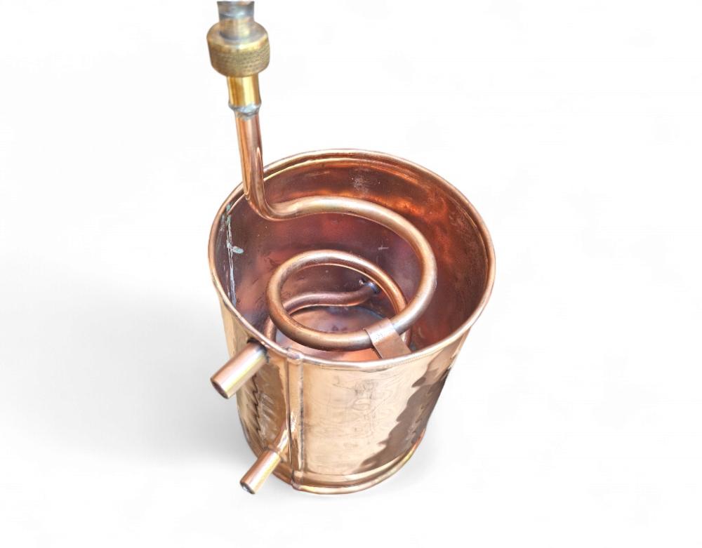 - Матеріал: Мідь використовується через її високу теплопровідність і здатність нейтралізувати сірчисті сполуки, які можуть впливати на смак та запах кінцевого продукту.