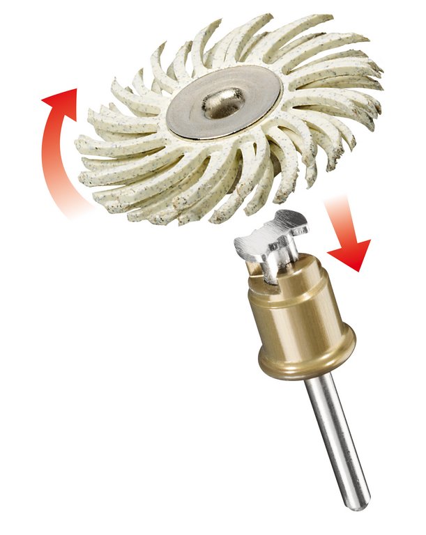 Купити в кредитDREMEL SpeedClic (472S) - якісні абразивні щітки зернистістю 120, мають дуже гнучку щетину, що дозволяє знімати шар матеріалу з поверхні, не ушкоджуючи основний шар. Вони можуть використовуватися для видалення задирок, чищення, остаточного оздоблення, полірування тонких невеликих деталей і важкодоступних місць.