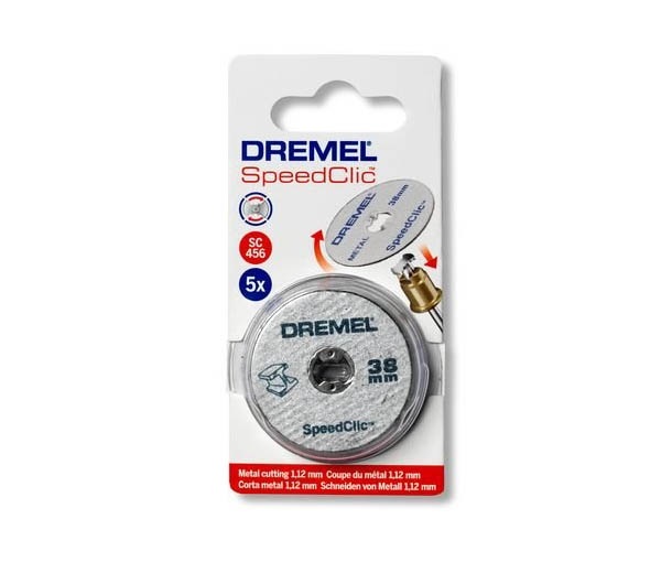 Відрізні круги Dremel SpeedClic SC456 - абразивні круги діаметром 38 мм, товщиною 1,0 мм, служать для різання будь-яких металів. Армовані скловолокном для високої міцності та безпечної роботи на понад високих обертах. Система EZ SpeedClic для швидкої та легкої заміни без використання додаткових інструментів.