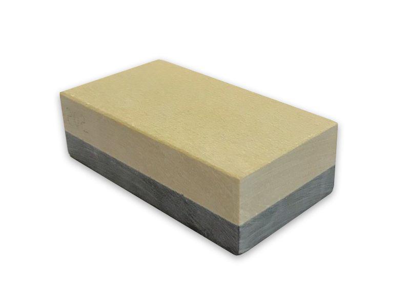 Жовтий брусок (Coticule) приклеєний епоксидним клеєм на натуральну сіру підкладку, непридатного чорного сланцю. Ці прямокутні камені виробляються в обмеженій кількості через складність геологічного родовища. Камені стандартної якості можуть мати кілька естетичних дефектів. Відібрані якісні камені являють собою рідкісні дефекти і зроблені з жилок вищої якості. Цей камінь можна використовувати для заточування бритв та ножів.