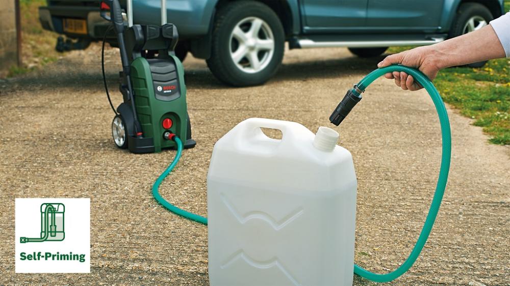 - Автоматичне всмоктування води: Може використовувати воду з відкритих резервуарів, таких як бочки або баки, що робить її більш гнучкою у використанні.