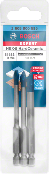 Набір свердел BOSCH EXPERT Hard Ceramic HEX-9, 5x90; 6x90; 8x90мм, 3 шт. (2608900595)