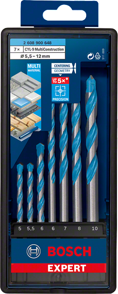 Набір універсальних свердел BOSCH EXPERT MultiConstruction CYL-9, 5/5,5/6/6/7/8/10 мм, 7 шт (2608900648)
