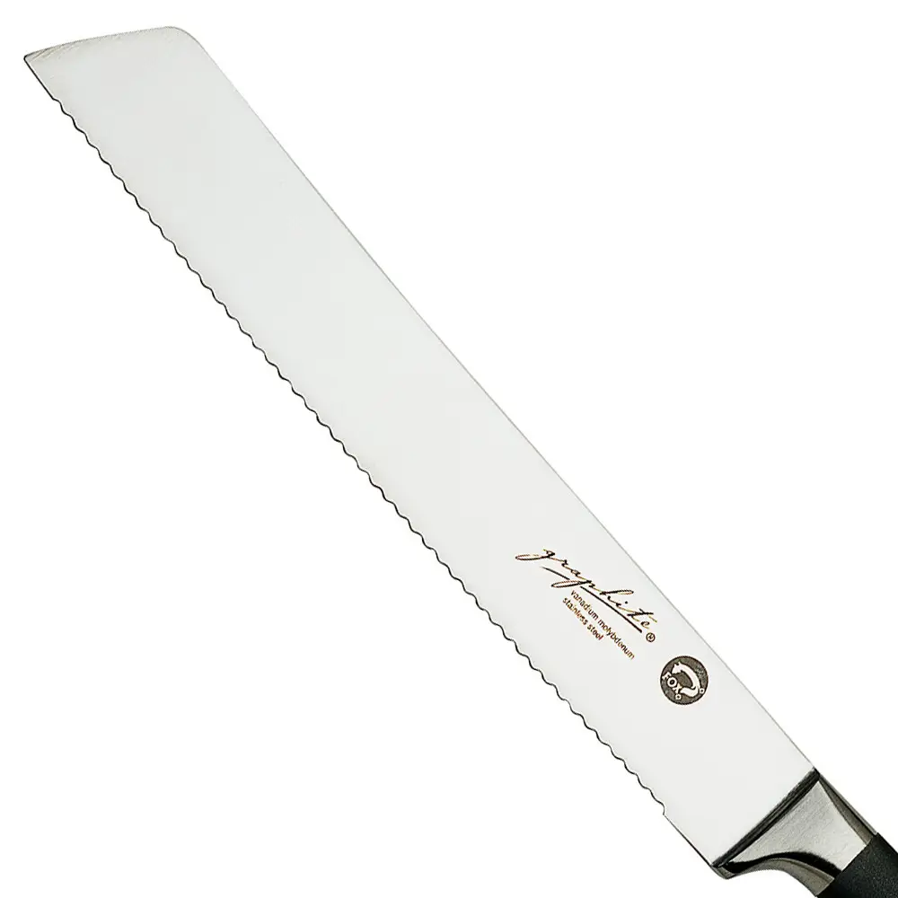 Особливість - зубчата заточка, яка дозволяє «розпилювати» тверду хлібну шкірку і розрізати м`якоть, не мнучи її