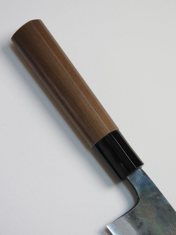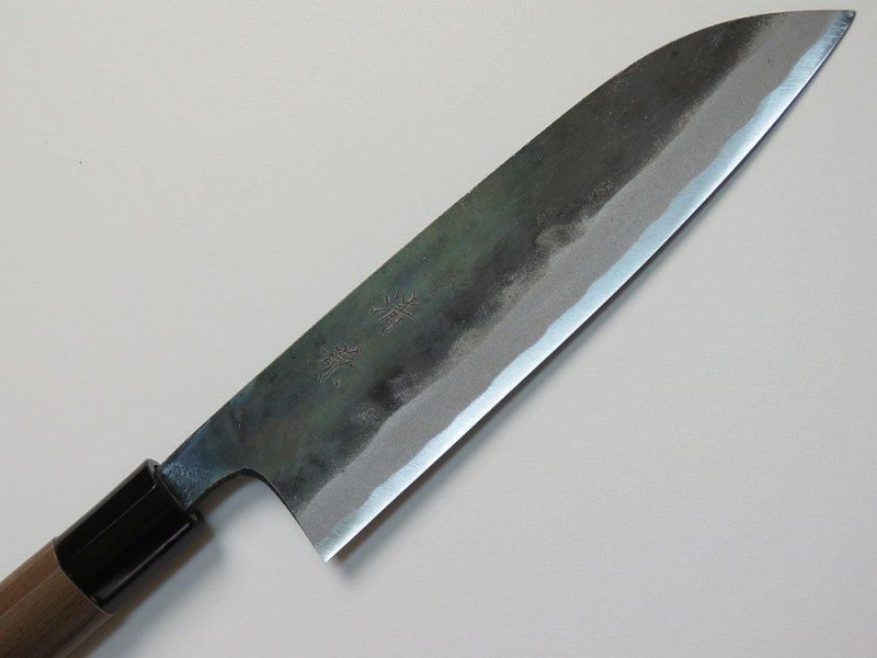 Виготовлений із сталі Aogami No1, яка містить високовуглецевий матеріал. Чудова сталь для професійних ножів, так що він дуже гострий і заточку тримає довше. Однак він легко іржавіє, тому потребує обслуговування.