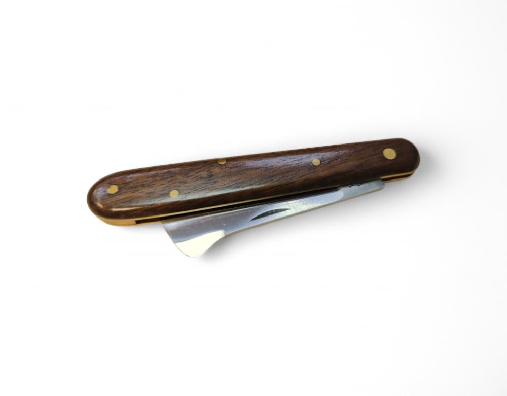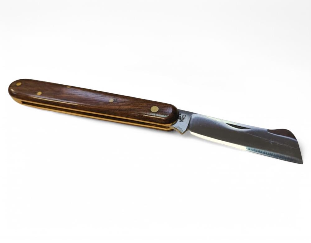 Купити в кредитНіж для щеплення дерев TINA 640/10.5L — це високоякісний інструмент, виготовлений у Німеччині з високовуглецевої сталі, яка забезпечує гостроту і чистоту зрізу навіть після 1000 щеплень, призначений для професійного окулірування та копулірування. Він оснащений прямим лезом із відділювачем кори, що робить його ідеальним для щеплення винограду, фруктових дерев та троянд. Рукоятка виготовлена з полірованого горіха, внутрішні накладки — з латуні, що забезпечує зручність та довговічність інструменту