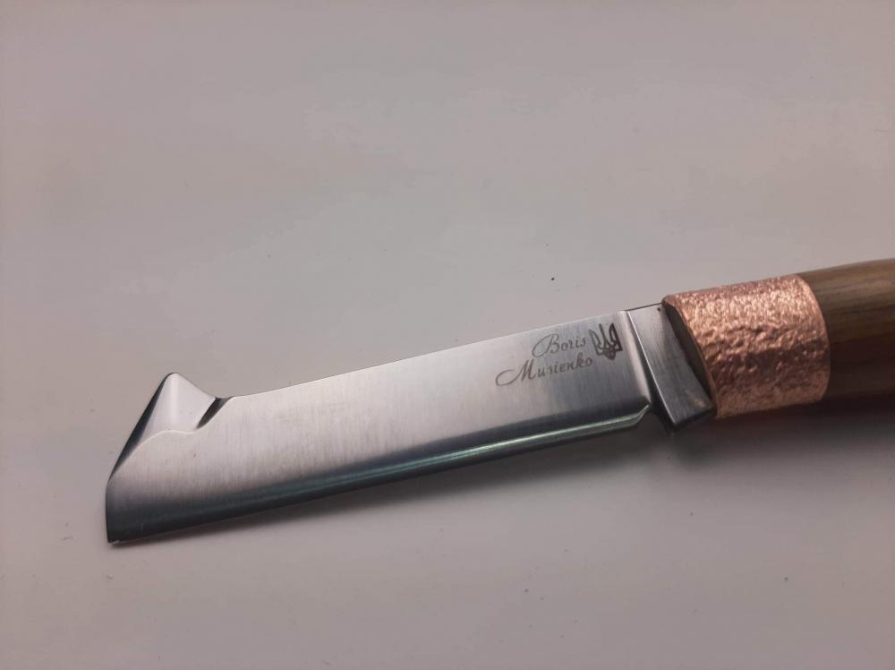 Купити в кредитНіж садовий для щеплення Мусієнко N690 1,08% C, 60 HRC, рукоятка - дуб. Ручна робота українського майстра.