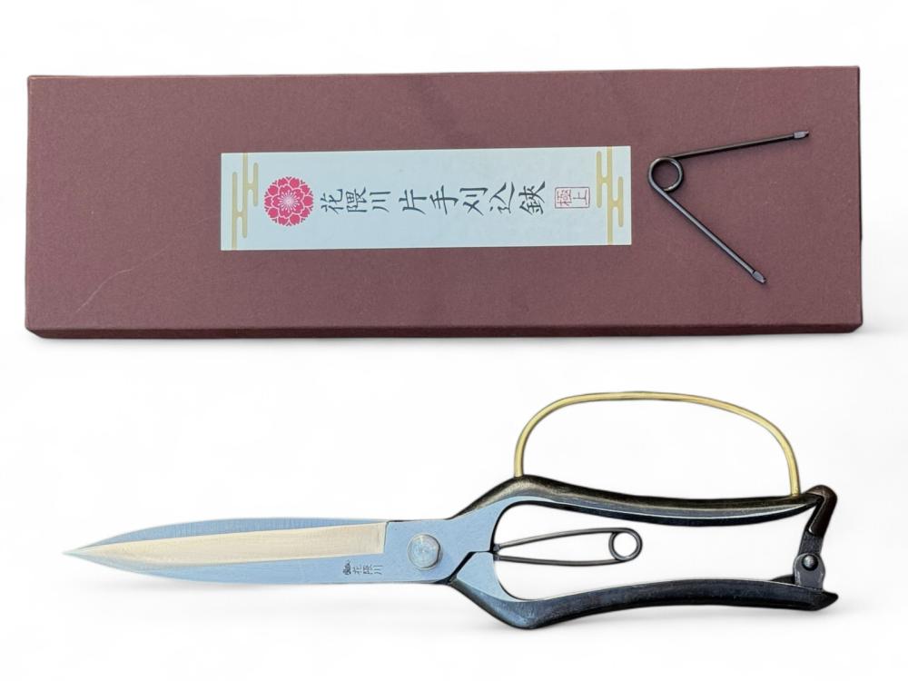 Професійні топіарні ножиці Hanakumagawa (артикул: 4580149742154) — це високоякісний садовий інструмент, зроблений вручну в Японії. Завдяки загальній довжині 270 мм і гострим 130 мм лезам з вуглецевої сталі S58C (твердість 61 HRC) ці ножиці ідеально підходять для точного підстригання та формування декоративних кущів, бонсай і топіарних фігур.