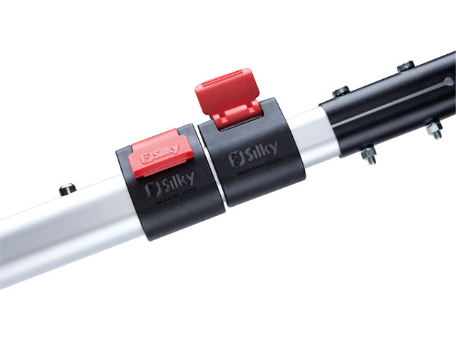 Пила Silky складається з телескопічної штанги (2350 мм - 4900 мм), що складається з трьох секцій, які фіксуються за допомогою запатентованої подвійної системи фіксації Silky для забезпечення максимальної надійності пиляння.