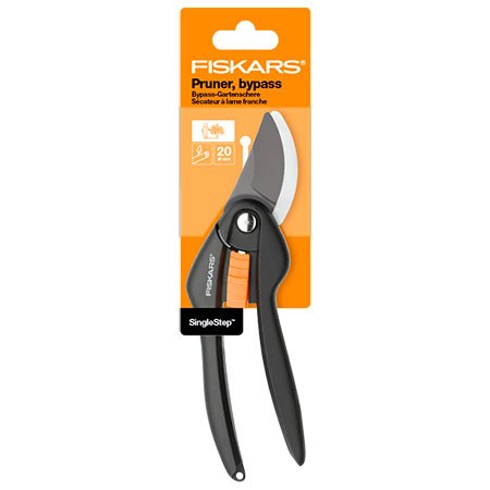 Площинний секатор SingleStep™ Fiskars P26 - недорогий секатор для підрізування живої деревини, зручної ергономічної форми та лезом із високоякісної вуглецевої сталі з антифрикційним покриттям.