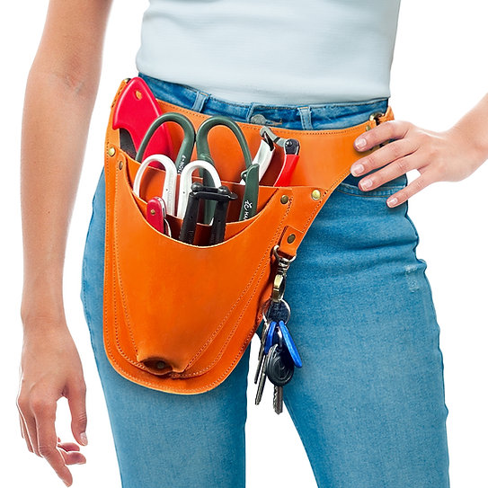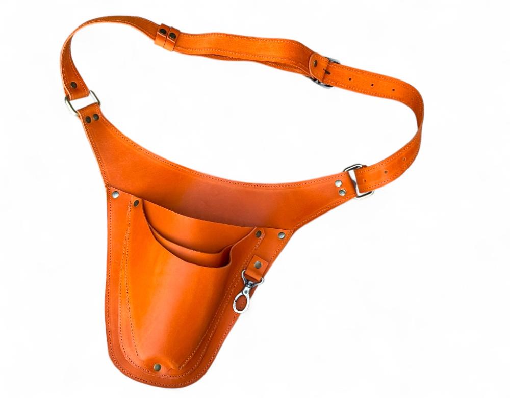 Пояс-чохол шкіряний для садового інструменту на 3 кишені (ПОМАРАНЧЕВИЙ) G-Leather