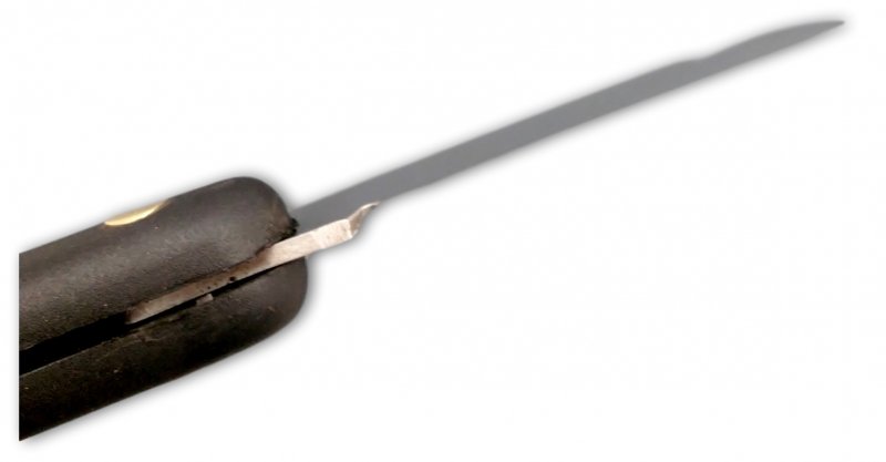 Лезо зі сталі з високим вмістом вуглецю, скошене з одного боку.Хороша проникаюча здатність;