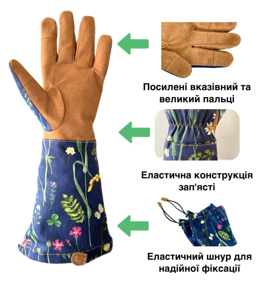 Рукавиці садові FLORAL HC з довгим манжетом,бавовна 98% + шкіра та полієстер, розмір L/10