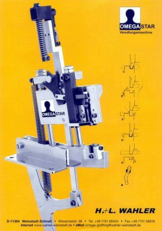 - верстат для Ω - подібного щеплення з ножним приводом, робить щеплення по два зрізи