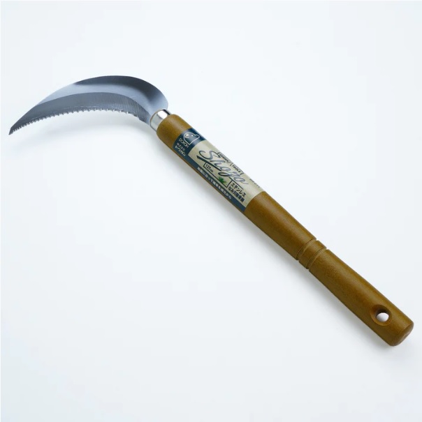 Купити в кредитСерп з зубцями SHOZO 125 мм лезо INOX, HONMAMON (4953981404601). Лезо виготовлено з нержавіючої сталі. Використовується для зрізання трав. Руків`я зроблено з дерева. Виготовлено в Японії