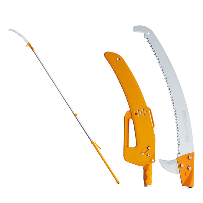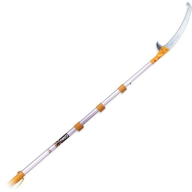 Пила Silky складається з телескопічної штанги (2400 до 3800 мм), що складається з двох секцій, які фіксуються за допомогою запатентованої подвійної системи фіксації Silky для забезпечення максимальної надійності пиляння.