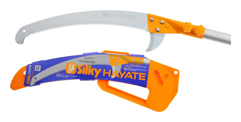 Пила комплектується серповидним полотном завдовжки 420 мм. Лезо має нижчий серп, що замінюється, для невеликих гілок і підрізає кори. HAYATE виготовляється з високими видимими квітами та оснащується новою передовою конструкційною оболонкою із вбудованою ручкою для перенесення. Зуби пили виточені за технологією Silky Mirai-me - що дозволяє отримувати виключно чистий спил.