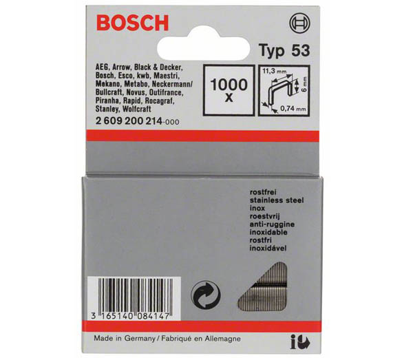 Скоби з нержавіючої сталі Bosch, тип 53, 6 мм (2609200214)