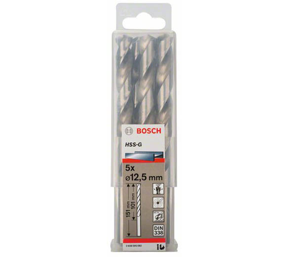 Свердло по металу Bosch HSS-G для легованої та нелегованої сталі з межею міцності при розтягуванні до 900 Н/мм², сталевого лиття, сірого чавуну , металокерамічного сплаву на основі заліза, ковкого чавуну, кольорового металу, твердих пластмас.