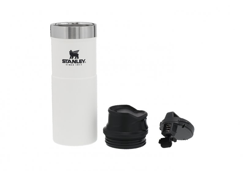 Дизайн термочашки викликає захоплення — білий колір у поєднанні зі сталевим обідком, логотипом Stanley та чорною кришкою оригінальної форми виглядає свіжо та ефектно. Аксесуар підкреслить вашу індивідуальність і стане невід`ємною частиною вашого повсякденного образу.
