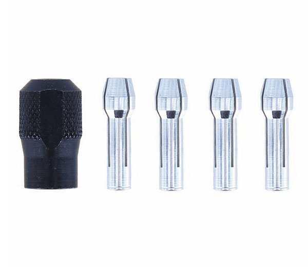 Набір для ідеальної фіксації різного оснащення та приладдя в багатофункціональний інструмент Дремель. Чотири різних розмірів дозволяють точно зафіксувати приладдя з хвостовиками в діапазоні від 0,5 до 3,2 мм. Набір комплектується фірмовою гайкою. Не сумісний із інструментом Dremel Multi 4200.