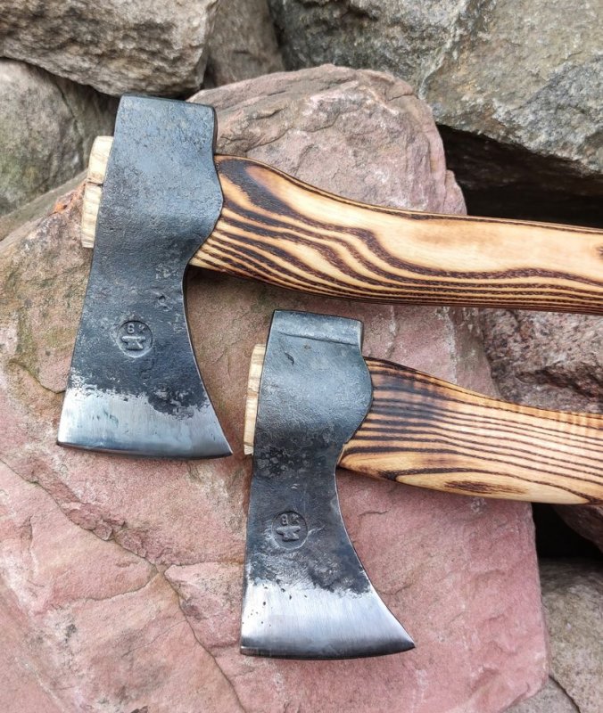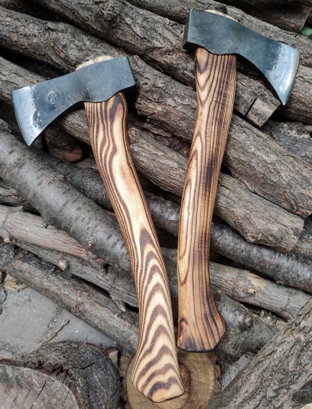 Сталь - У8А (зонне загартування на 56-57 одиниць). Загальна вага 870/840 р., довжина 40 см, сокирище - ясен злегка обпалені та оброблене лляною олією.