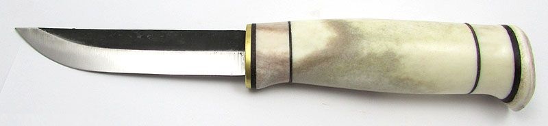 Нож Erapuu Puukko Antler 95, 80CrV2 - маленький традиционный финский ленточный нож общего назначения. Рукоятка - олений рог.