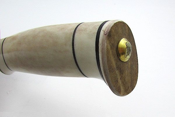 Это совершенно великолепный нож с рукоятью, которая сделана почти полностью из оленьих рогов, разных оттенков и отделена волокнистыми прокладками. Большинство ножей Scandi имеют деревянную ручку с роговыми бликами, но эта ручка действительно выделяет этот нож из толпы. Ручка очень хорошо обработана и вылеплена в удобную, эргономичную форму. Традиционная оболочка с глубоким мешочком имеет штампованные узоры и пластиковую вставку.