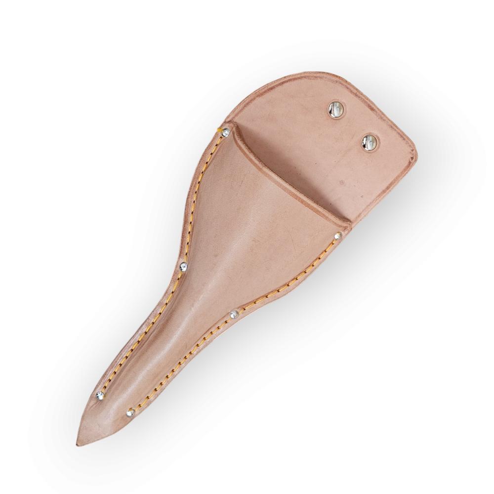 Чехол изготовлен из светло-коричневой кожи. С внутренней стороны имеет петлю для крепления на пояс