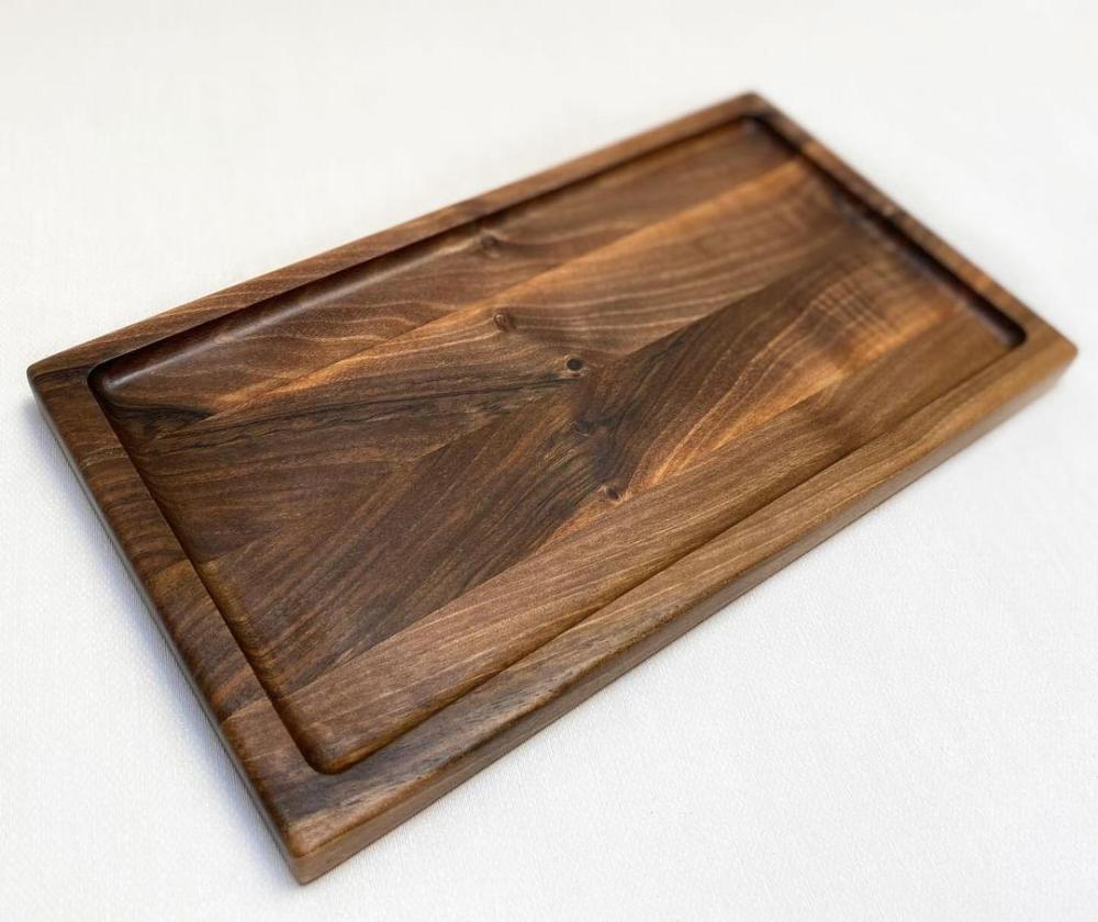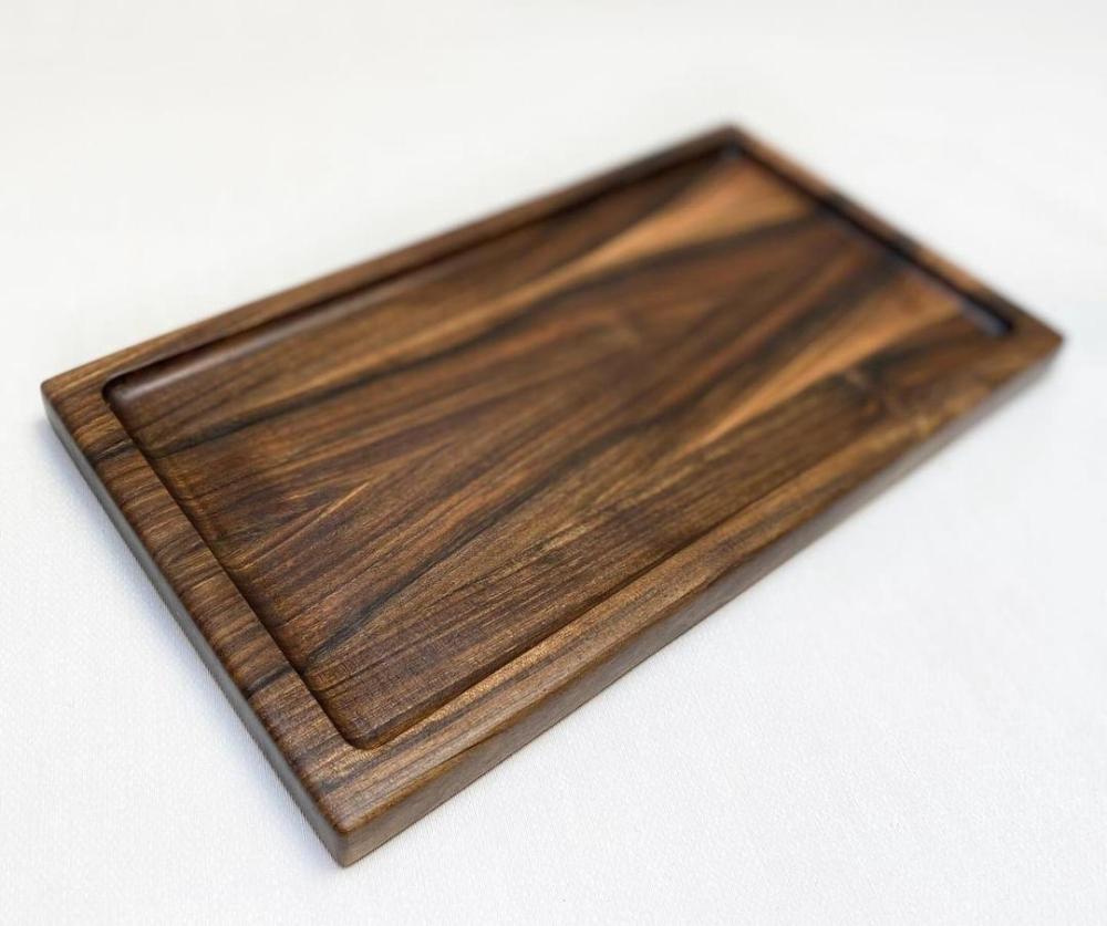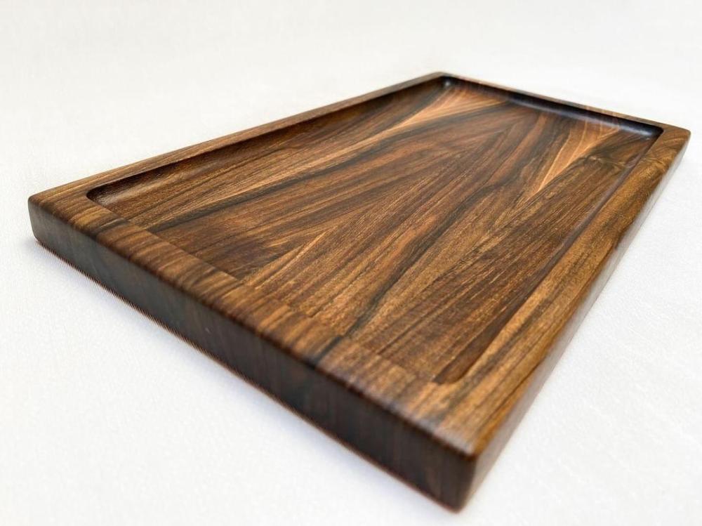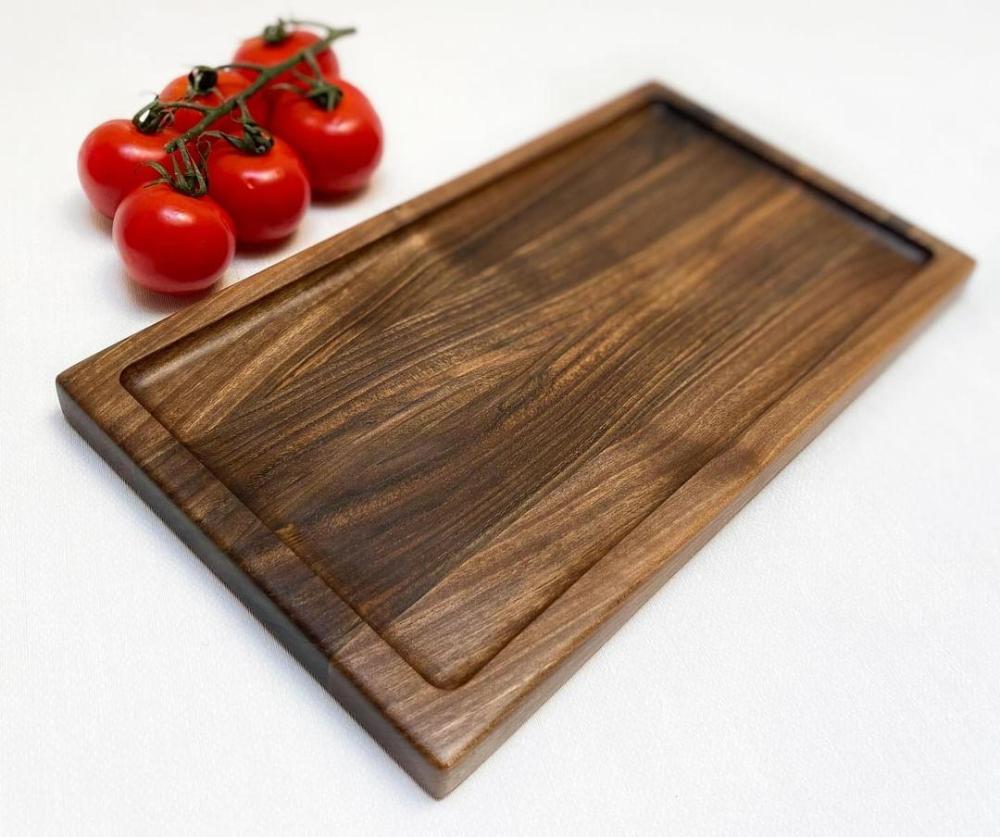 Доска LUXURY 3017020W имеет конавки по переметру. Используется для подачи основных блюд, мясных изделий, творога, суши и других продуктов. Имеет размер 300 х 170 х 20 мм. Изготовлен из ореха в ручную и покрыта специальной пропиткой.