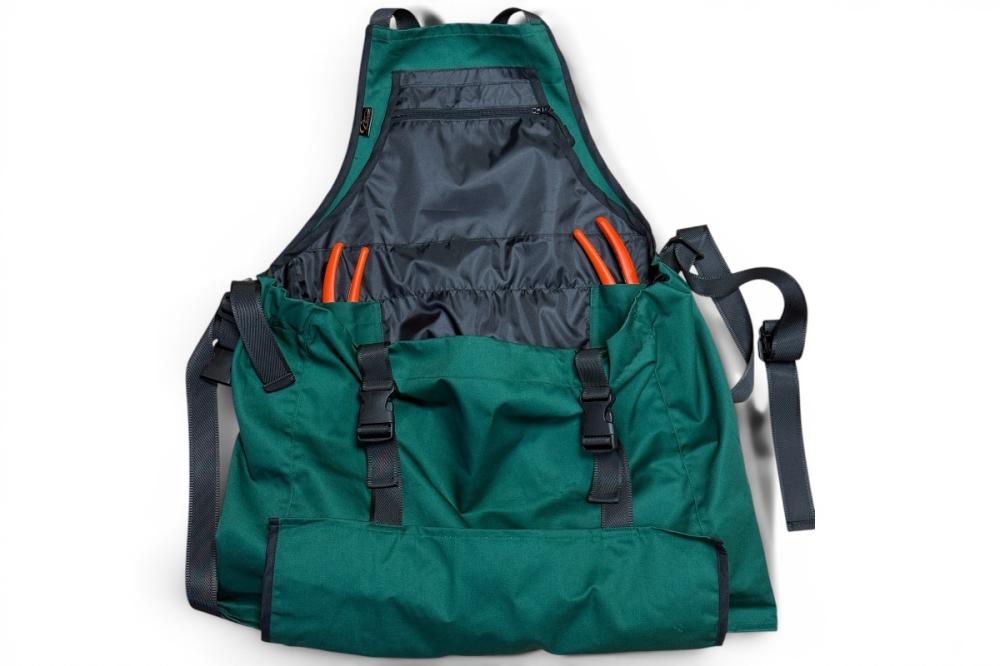 - Свойства: водостойкий, отдел для сбора урожая, имеет карманы для секаторов, ножниц, телефона и т.п.