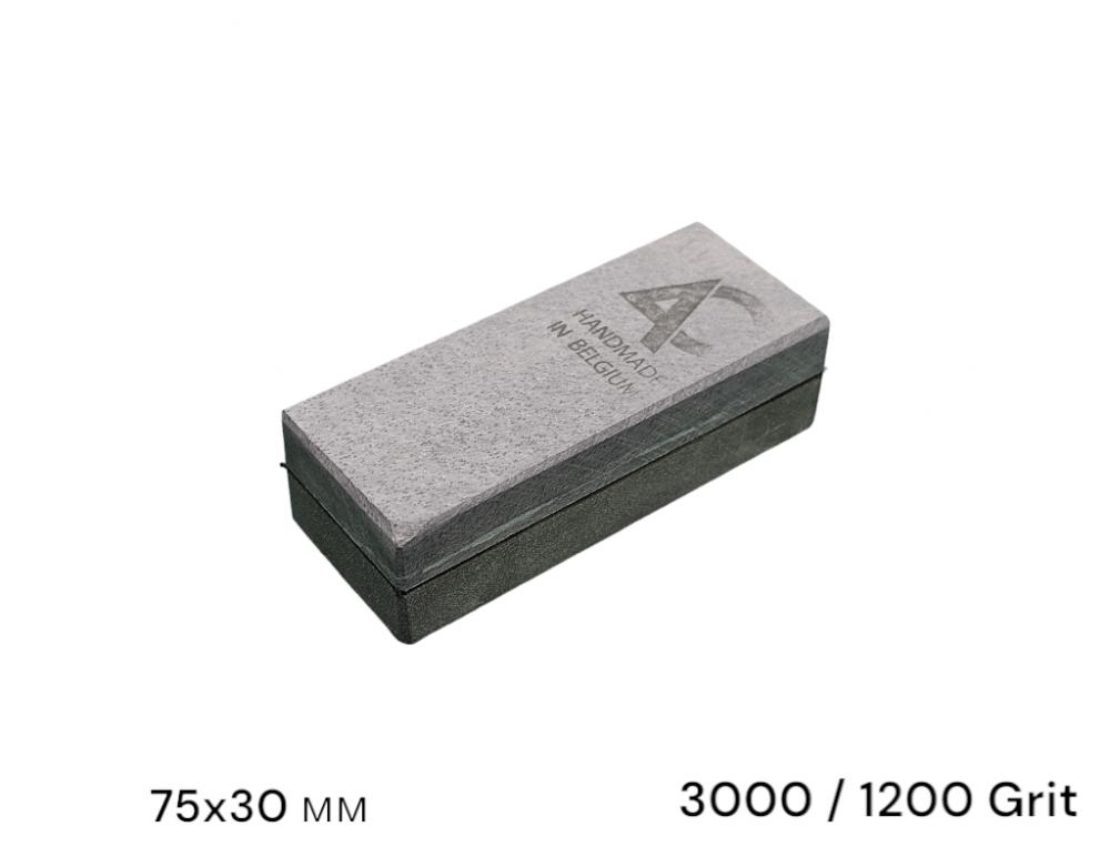 Камень точильный (BBW+Pyrenees) 75мм*30мм имеет зернистость 3000 (со стороны BBW) и 1200 (со стороны Pyrenees).