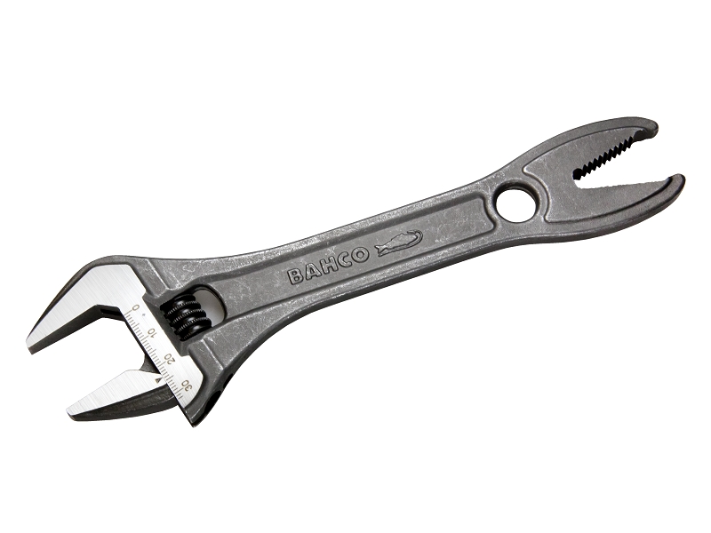 Шведский разводной ключ Bahco 31 - традиционная модель, снабжена измерительной шкалой и на конце рукоятки губки с захватом "крокодил". Захват "крокодил" можно использовать в качестве трубного ключа. Корпус инструмента фосфатирован для защиты от коррозии. Соответствует стандарту европейскому стандарту DIN 3117 Форма А, угол 15°.
