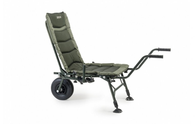 Купить в кредитКресло привлекает внимание стильным и качественным исполнением, а также широкими функциональными возможностями. Это довольно компактная модель, в сложенном виде не занимает много места в багажнике автомобиля, быстро трансформируется в надежную тележку с ручками и надувным колесом, в которой можно перевезти все рыболовное снаряжение поближе к водоему. Здесь конструкция превращается в уютное карповое кресло с высокой спинкой и мягким матрасом. Основу кресла составляет прочный металлический каркас, способный выдержать нагрузку до 150 кг. Благодаря 4-м телескопическим ножкам кресло можно адаптировать практически к любой поверхности, а широкие основания делают его устойчивым и предотвращают проваливание в грунт. Вокруг кресла расположены 8 держателей для адаптеров. С их помощью можно крепить дополнительные приспособления и аксессуары, чтобы оборудовать идеальный рабочий уголок рыболова.