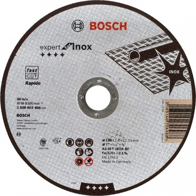 Характеристики круга отрезного Bosch Expert for Inox прямой 180×1,6 мм (2608603406):