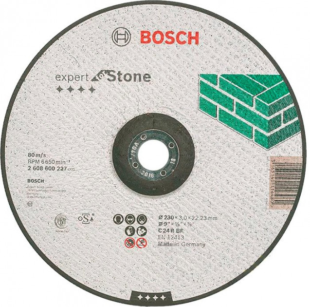 Характеристики круга отрезного Bosch Expert for Stone выпуклый 230×3 мм (2608600227):