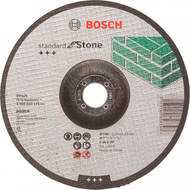 Характеристики круга отрезного Bosch Standard for Stone выпуклый 180×3 мм (2608603175):