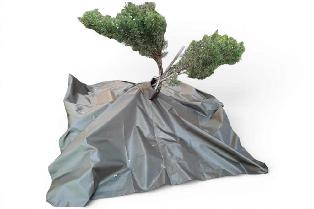 Благодаря размеру 300х300 см коврик обеспечивает достаточную площадь для работы с небольшими растениями. От центра расположены фиксаторы-кнопки, позволяющие легко устанавливать коврик в центр ствола растения. Центр коврика имеет бортик и завязки для плотного охвата ствола растения.