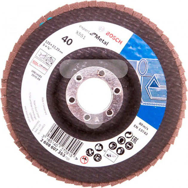 Характеристики лепесткового шлифкруга Bosch Expert for Metal, 125×22,23 мм, К60 (2608607354):