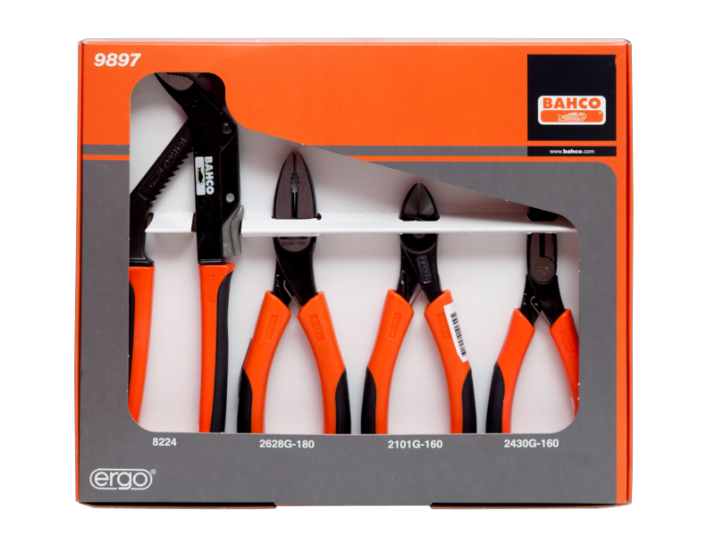 Набор инструментов BAHCO 9897 оснащен: переставными клещами 8224, плоскогубцами 2628G,бокорезами 2102G-160, плоскогубцами с удлиненными губками 2430G-160. Невероятное удобство набора инструментов BAHCO 9897 в использование и возможности прикладывать минимум усилий из-за своей эргономичной конструкции. Набор инструментов BAHCO 9897 приспособленный двухкомпонентными рукоятками и надежными захватами. Изготовлен набор инструментов BAHCO 9897 из доброкачественной легированной черной стали, которая подвергнута антикоррозионной обработке.