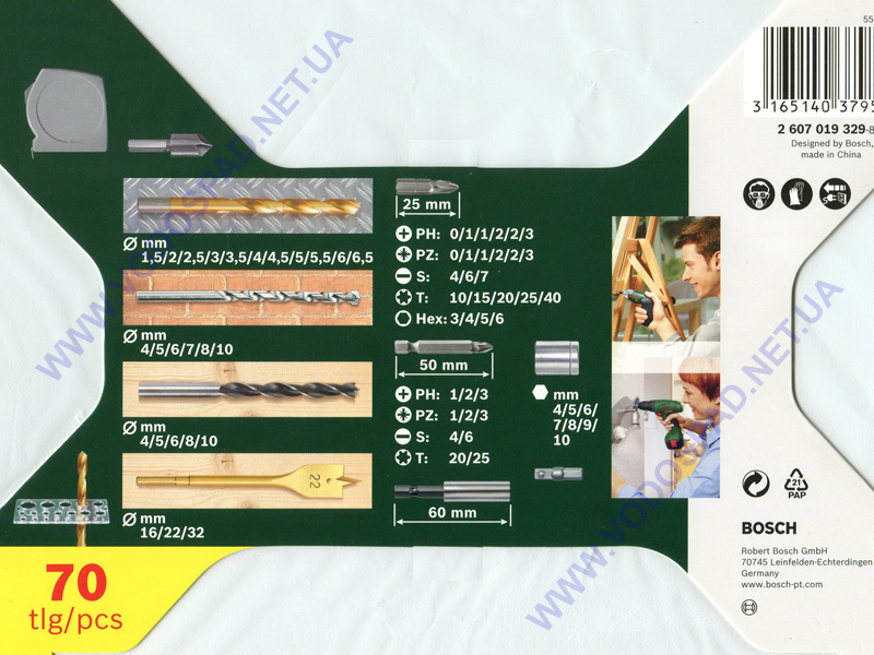 Купить в кредитНабор принадлежностей Bosch X-LINE-Ti 70 шт (2607019329) - универсальный комплект в который входит широкий набор сверл для разных материалов, бит насадки, зенкер, магнитный держатель бит, головки торцевые, измерительная рулетка. Этот набор инструментов идеально подойдет как для сверления в камне, кирпиче так и для работ по дереву и металлу. Перьевые сверла по дереву теперь помогут вам просверлить даже большие диаметры 16/22/32 мм. Головки торцевые позволяют производить заворачивание болтов и гаек размером 4/5/6/7/8/9/10 мм. В наборе присутствует практически все часто используемые виды бит-насадок. Отличный, недорогой комплект для работ по дому при помощи дрели или шуруповерта.