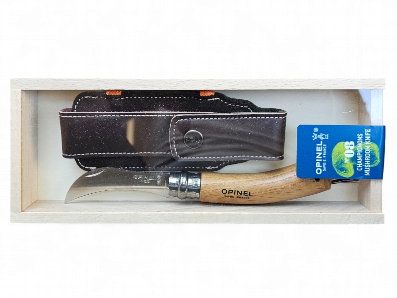 Нож грибника Opinel №8, лезвие 75мм, сталь нержавейка + кисточка (с чехлом) (в коробке)