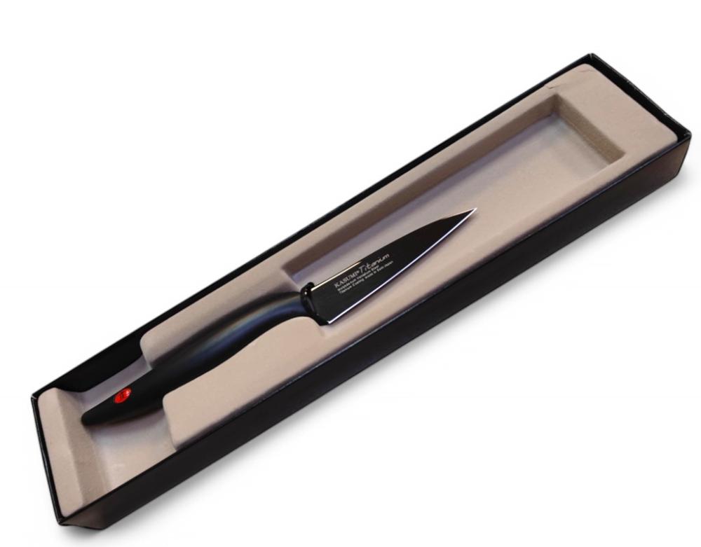 Кухонный нож KASUMI Titanium K-22008GR графитового цвета идеально подходит для чистки и нарезки овощей и фруктов.