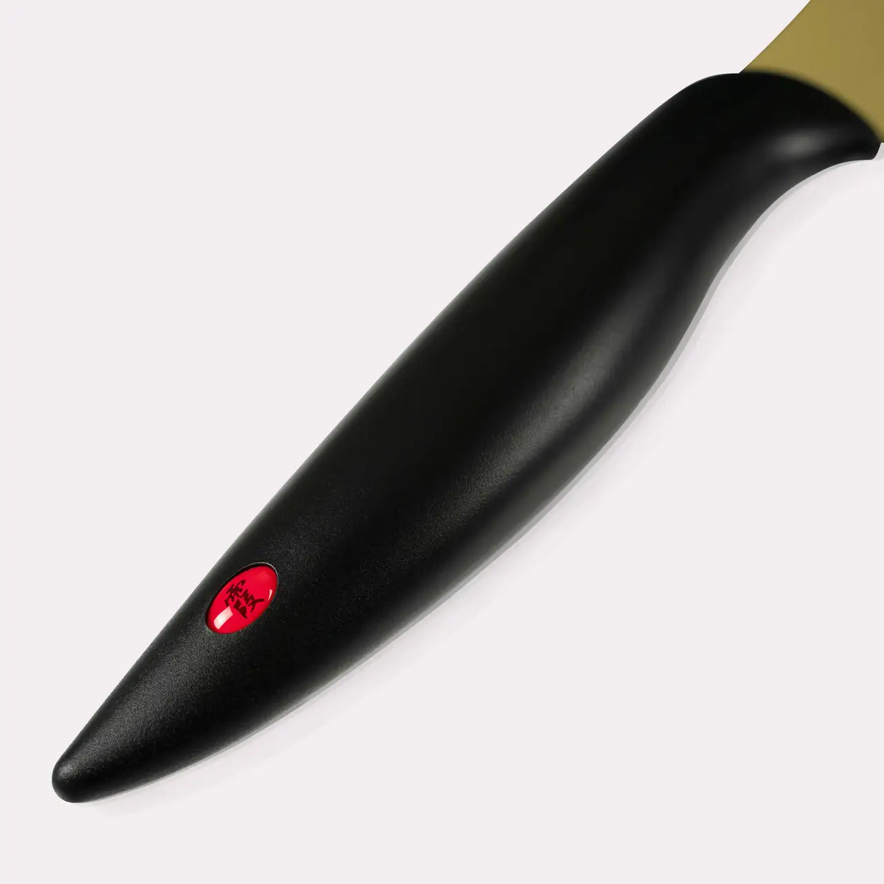 Нож для овощей с тонким узким лезвием идеально подходит для повседневной работы на кухне, например, для нарезки лука, чеснока или перца. Благодаря оптимальному весу и хорошо сбалансированной ручке пользоваться им очень удобно. Титановое покрытие предотвращает прилипание нарезанных продуктов к лезвию, что значительно повышает эффективность и комфорт работы.