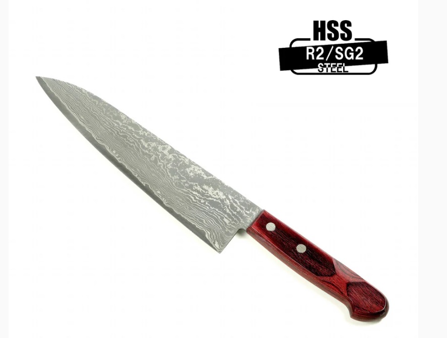 Нож кухонный Gyuto (Шеф) 210 мм лезвие, HRC63 дамаск, HSS R2, HONMAMON (4582243651745)