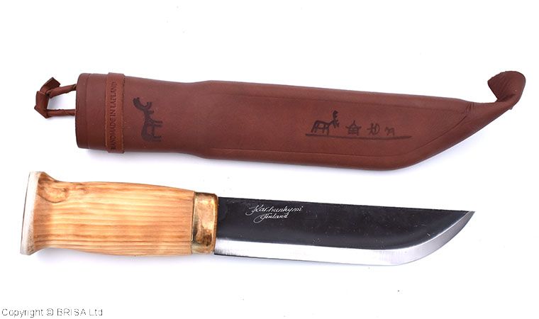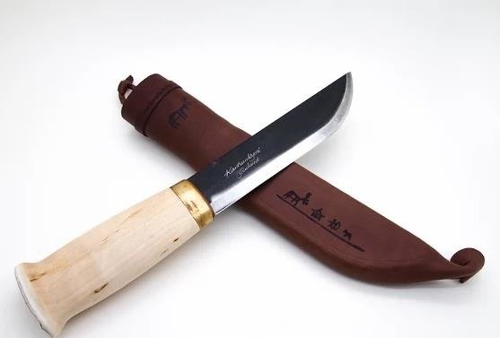 Это практичный универсальный, большой и крепкий нож с традиционным скандинавским клинком Leuku. Нож ручной работы изготовлен из высококачественных материалов: рукоятка из карельской березы и рога северного оленя, лезвие из углеродистой стали марки 80CrV2. Данный нож используют для всех обычных видов деятельности, от легкой обработки древесины, таких как рубка небольших кусков древесины или удаление коры до обработки улова.