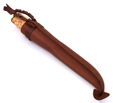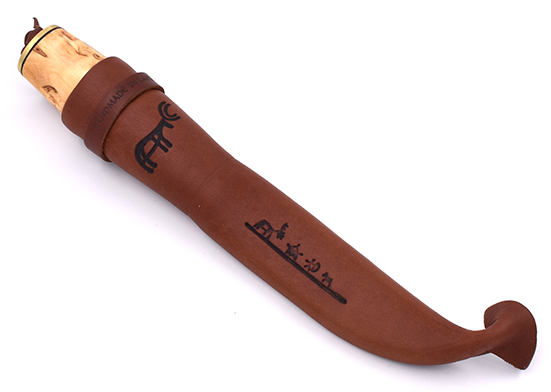 нож комплектуется кожаными ножнами с традиционным лапландским тиснением