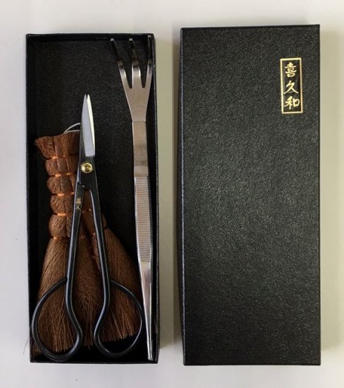 Набор для бонсаи: Ножницы SATSUKI 180 мм, пинцет с граблями 21 см, метла-щетка 14 см, KIKUWA (1117657)