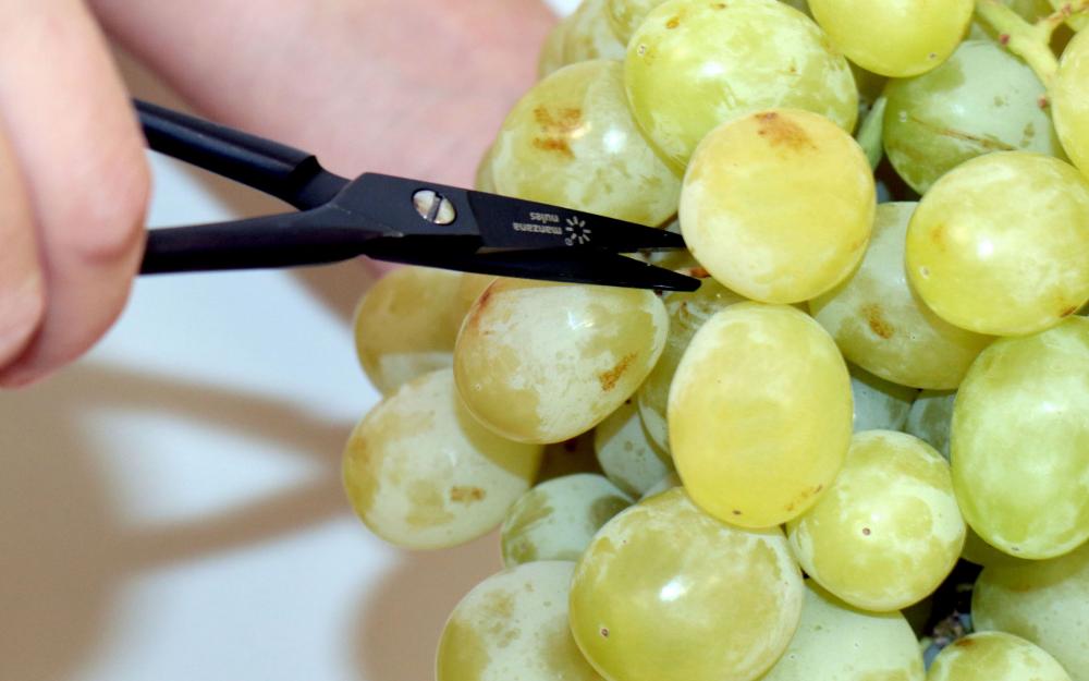Ножницы 140 мм для прореживания ягод винограда. Лезвия длиной 3 см кованые, что еффективно влияет на сохранение остроты лезвий, покрытые специальной краской, для предотвращения ржавения, Manzana (UV-17)
